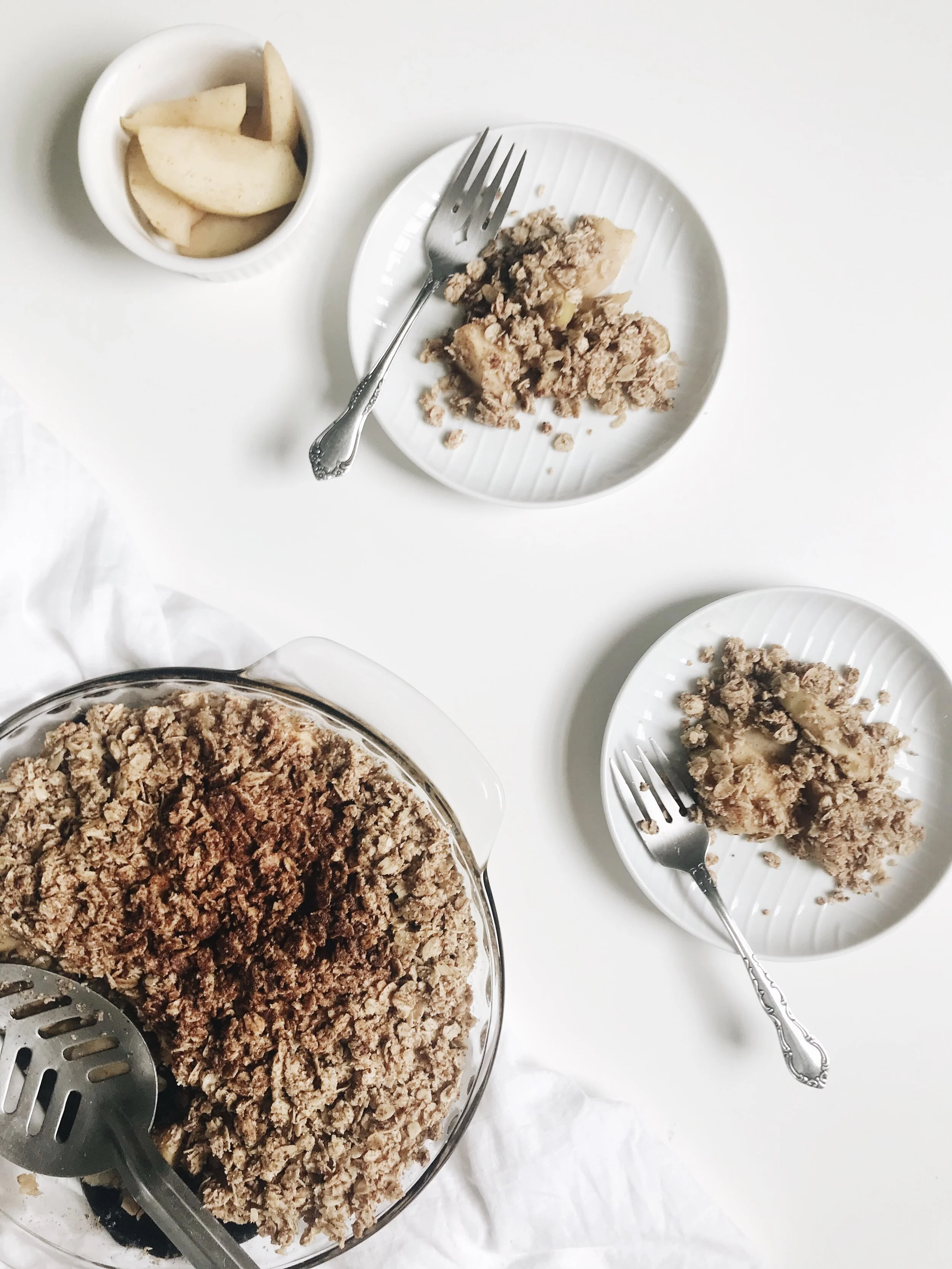 Growing up my mum would make apple crumble for dessert and it got me inspired to create my own recipe using minimal + whole ingredients. While I am a chocolate girl through and through, there is something about apple crumble that just makes me feel nostalgic, happy and comforted.